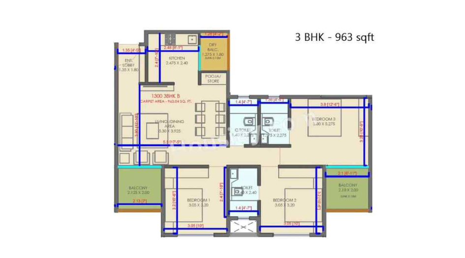 | Spacious 2 BHK & 3 BHK Apartments. |